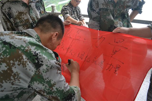 7月16日早上7點,所有人員整裝待發(fā)去杭州臨安的訓練基地。上午九點整所有人到達目的地,換上了英姿颯爽的迷彩服排好隊伍。
