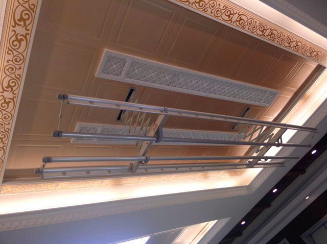 2.電動遙控,輕松晾衣。無線數碼遙控,永不重碼,發射距離可達30米真正高頻無線操作,不收障礙物阻擋。