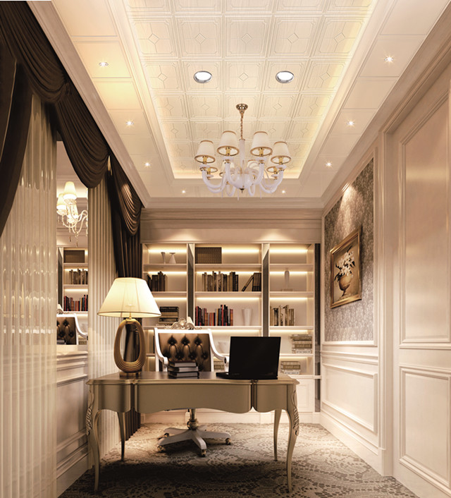歐式風(fēng)格的書房,在家具上的選擇一些具有“歐味”的書柜和工作臺(tái),再配以西洋油畫、水彩畫和雕塑等也能增強(qiáng)歐陸風(fēng)情,如女體像柱、繪畫雕塑、裝飾假面以及圓形或橢圓形雕飾等圖案。在這樣的書房辦公,會(huì)不會(huì)事半功倍呢?