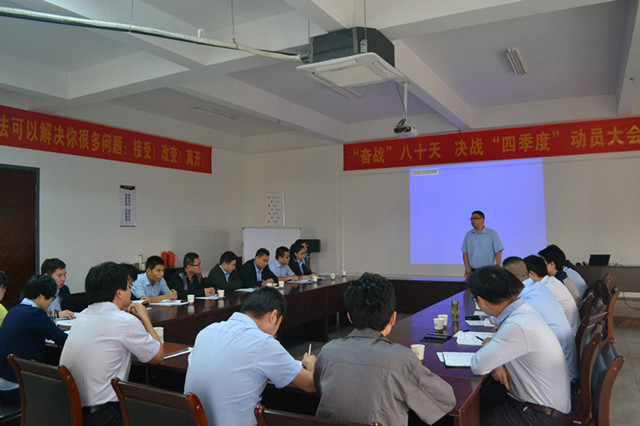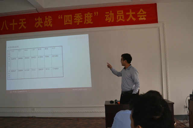 10月10日上午,奇力四樓會議室召開了 “奮戰80天,決戰四季度“動員大會。總經理穆國強出席會議并指導工作,總經辦副總經理與營銷總監率營銷部下屬銷售部、市場部全體人員及客服部代表參加會議。本次會議重點圍繞2015第三季度各項工作情況與問題進行全面匯總的同時,更對第四季度工作目標做了詳細的規劃與布局。