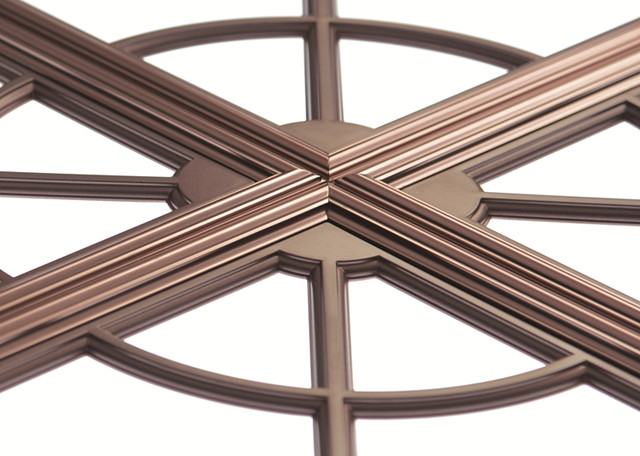 奇力一貫注重空間裝飾中的數學與美學結合,對頂部空間貫注創造性的洞察力和感悟力。奇力采用“345“勾股弦方是吊頂版面尺寸上的大突破。奇力吊頂在科技上也是下足了功夫,奇力擁有6大技術,第一是“微碳晶”技術,奇力吊頂的造型框采用國際頂尖的“微碳晶”合金鋁材,歷經950度高微碳晶煅燒提純,二次陽極氧化技術,純色燙金工藝,其硬度是普通鋁材板型的3倍,價格是普通鋁型的4倍。