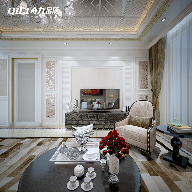 在美式、法式或者古典風格里,踢腳線和門套、天花等等形成視覺上的統一效果,起到裝飾性作用。